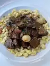 The food was excellent , Unfortunately the service we received fell way short to the meal it self. My wife had the Boeuf Bourguignon and I had the steak with Frites, both very well done and we found it to,be quite tasty. We also had a good wine Fromm the Rhône region. However, our server disappeared for long periods during dinner and when she showed up, she smelled like cigarettes . Frankly, that is not fair to those of us who do not smoke and don’t care to smell like cigarettes. Again, food was excellent, service took away, what could have been a wonderful dinner.