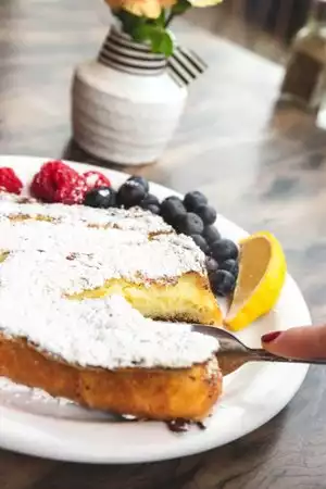 Cafe Du Berry French toast is their house speciality and it will not disappoint your taste buds. Bon appetite! The atmosphere is that of an old house. But, weather permitting, do sit outside. The garden setting gives it a peaceful ambience. Be aware that MacAdam is a major street -- with very noisy traffic. Upon finishing your meal -- take a walk along the waterfront at Willamette Park. (Parking is not free so leave your car in the neighborhood as you stroll along the walkway).