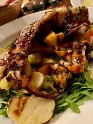We had three really good meals and service here - a breakfast and two dinners. We normally avoid hotel restaurants - usually stupidly expensive and mediocre food. But reviews were pretty good and it was the weekend of the miserable cold, rain, snow and we were very happy not to venture back out at night after busy days. And not a lot of eating choices in the neighborhood. Really good food that seemed priced fairly: fried chicken sandwich, amazing frites, steak, roasted salmon. Yum apple baked dessert with ice cream. I didn't want a whole big breakfast and just asked for two eggs and toast which they accommodated. They have one menu all day that has something for everyone. Highly recommend.