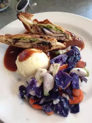 Good food in a wonderful atrium type setting. I have been here several times and enjoyed the mushroom wellington as well as the veggie burger and sweet potatoe fries.