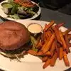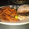 We sat out on the patio; it was really cool out their. I loved all the greenery; felt like I was somewhere tropical. I normally don't get drinks out but the menu sounded too good. My friend and I got the hot apple cider and the combo (1/2 raspberry lemonade, 1/2 cranberry ginger cider); so good! The latter was so interesting, not like anything I've ever had before. It sounded so different I had to try it and glad I did! I have a gluten and dairy allergy and they were able to accommodate me with multiple options. Their menu is awesome because it denotes what foods are GF, vegan, and/or soy-free. I got the Italian burger with yam fries. So good! The menu didn't denote the sandwich as GF, but when I asked about it, they were able to use a special bread. It was more like a pita. I love french fries and was happy to have allergy friendly french fries! I truly enjoyed my visit; good eats!