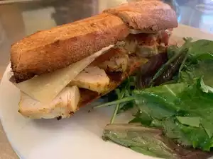 What a wonderful little cafe - emphasis on 'little' With friends who live a few doors down, it's been years since we were able to get in - always a crowd waiting. And for good reason! Finally went there last night, when the neighborhood was quiet (holiday time.) Enjoyed a few glasses of nice wine, goat cheese / pomegranate syrup appetizer and the most AMAZING chicken salad/mango sandwich. Bread was absolutely perfect - crunchy exterior but tender inside, flavorful mayonnaise, fresh chicken slices with mango & strawberry on top. Served with a lovely salad, it was a light but satisfying dish. Staff was also lovely.