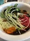 Café Gratitude in Venice offers a refreshing, intentional take on plant-based dining — one that balances nourishment, creativity, and warmth. The menu is vibrant and focused, with standout dishes like the cauliflower steak, tempeh wraps, and seasonal bowls that highlight whole ingredients without overcomplication. Flavors are clean and well-executed, and the presentation has a sense of care without being overly precious. The beverage offerings — from cold-pressed juices to herbal tonics — complement the menu well, and the space itself is open, airy, and welcoming. It's a place that encourages mindful dining without sacrificing pleasure. What sets this location apart is the service culture. Staff are knowledgeable, positive, and genuinely engaged — the kind of team that seems to believe in the restaurant’s mission. While not every ingredient is strictly organic, the kitchen clearly prioritizes quality sourcing and allergen awareness. Café Gratitude is not just another health trend — it’s an experience grounded in consistency, hospitality, and purpose. For those seeking food that feels good in every sense, this place delivers.