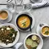 First question we were asked was what are we grateful for today. We had brunch, started with booster shots then very healthy and delicious vegan dishes. Awesome tastes and great ingredients.