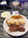 Enjoyed a pre-concert meal here and was very surprised at how good the food and service was. I thought it would be crowded, but I guess not everyone is a fan of the Scorpions! Thought we could get breakfast all day, and you can, it is just limited. My friend was disappointed that she couldn't have her eggs benedict! But the offerings are very extensive. I enjoyed their "famous" crispy chicken and it was fabulous. I don't know if was the long island ice tea I had first, but the food was amazing. They bread the strips with some lethal concoction of honey or waffle or something a bit sweet and then to balance that, give you a zingy dipping sauce. I am still sorry I was unable to finish it and didn't put the remainer in my purse for later! Service was excellent and the prices were more reasonable than the Paris (where we were staying) right next door.