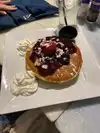 We ordered the Strawberry Pancakes and they were under cooked, in both plates. They had only 2 slices of strawberries and the rest was fake marmalade. For the price and the location, I was expecting more