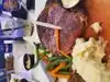 We came at dinner for the $20 prime rib meal. Salad, mixed veggies, mashed potatoes and a 12 oz prime rib. Everything was cooked perfectly and the service was top-notch! I totally get why this is a Traveler’s Choice restaurant!