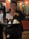 The cafe Hazel was great and so were the desserts. Although the server ( Crystal) was friendly, my espresso was lukewarm and I asked for a hot one and the she did not give me a fresh one, she just reheated it. She also pored water on my foot when refilling the waters, and didn't offer a napkin to dry my foot/sandal! She apologized, but that was it!! We had to ask for napkins and utensils. Next time we will ask for Harold. Harold was our server on our first visit and he was super!!