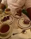 Billed as a European coffeehouse, Cafe Intermezzo cultivates an old-world atmosphere with small cozy tables, brick paving stones, and greenery. True to its category, the lists of coffees, teas, and other drinks are extensive. The food menu, while more limited, offered plenty of variety, and I've made notes about what I'd like to try next visit. Their pastry showcases are the highlight of the restaurant, especially the cakes and cheesecakes. Service is personable and unhurried. Cafe Intermezzo is an adult restaurant, but children are welcomed, and my four-year-old grandchild did quite well during afternoon tea time.
