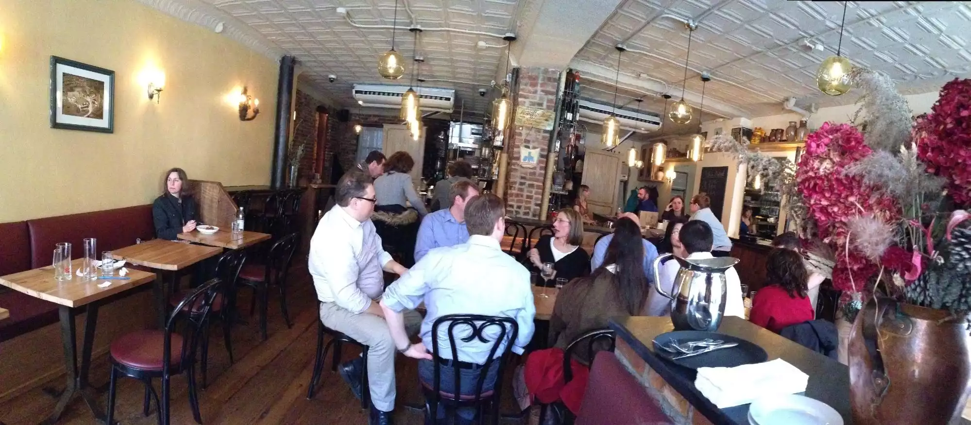 Recommended by an employee at the tenement museum for lunch. Very bland food. $50 for a lunch for two, walked away feeling slighted. Will not return and do not recommend.
