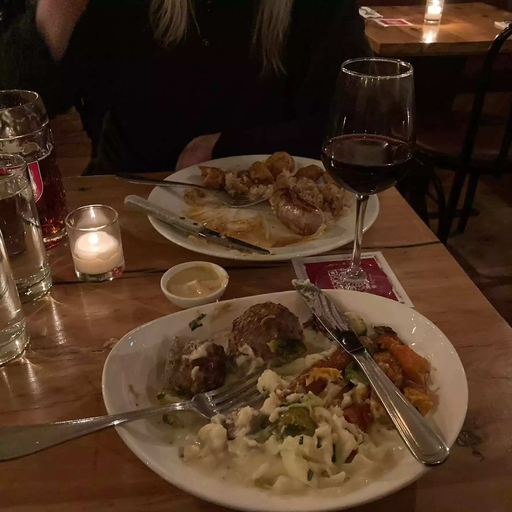 Amazing German food! Enjoyable service and pleasant atmosphere (candles on the tables... I really love them at night). I ordered Emmentaler sausage with savoy cabbage and quark dumplings. Truly delicious! I actually loved this place and I'll come back when I'm in NYC.