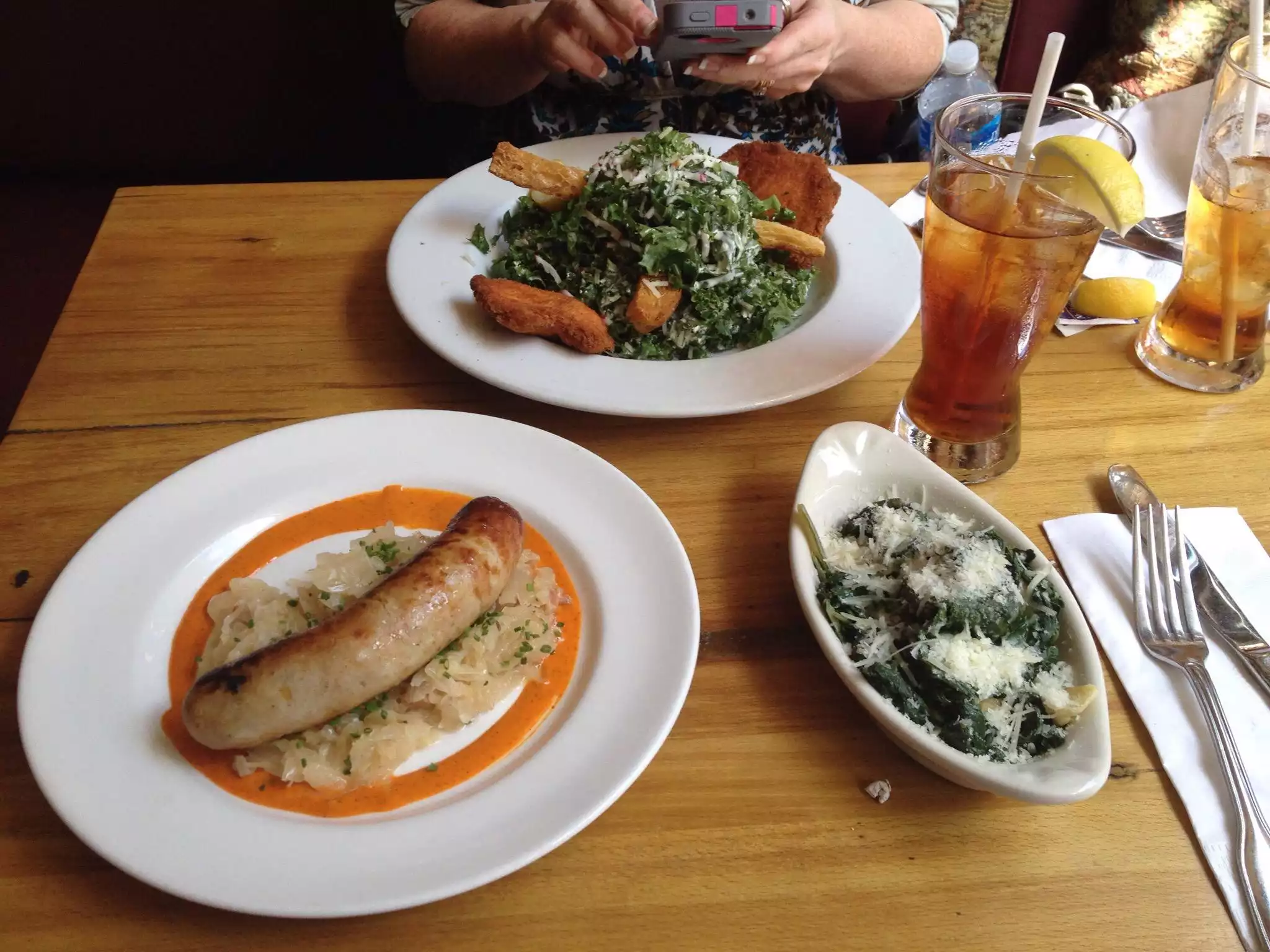 Wish we had been hungrier! When we planned our itinerary to visit our NYC daughter, I chose Cafe Katja to visit after touring the Tenement Museum as it is nearby. We were not, however, as hungry as we thought we'd be by that point in the day. We rallied, however, to order some food anyway! Daughter had a cocktail that involved grapefruit juice and liquor and something pink or red - it was refreshing. Husband had a beer. He also had the liverwurst appetizer which was not like any liverwurst we've ever tried. It was more like a whipped pate and served with pickled veggies and toast points. Our daughter and I ordered a plate of the Austrian version of mac'n'cheese - the spaetzle w/ gruyere and butter - such a large plate that we each ate some and boxed the rest to go. We also shared an apple strudel which was perfect, just perfect with a generous amount of thick whipped cream - which looked at first like ice cream on the side of the strudel. Even being not so hungry, I could have eaten the strudel just myself. We looked longingly at the large plates of sausages, red cabbage, schnitzel, and more that we had thought we'd be trying that evening but alas, our lunch had been too large and too late. Would definitely return if we had the opportunity. Our daughter says she will now that she knows about it.