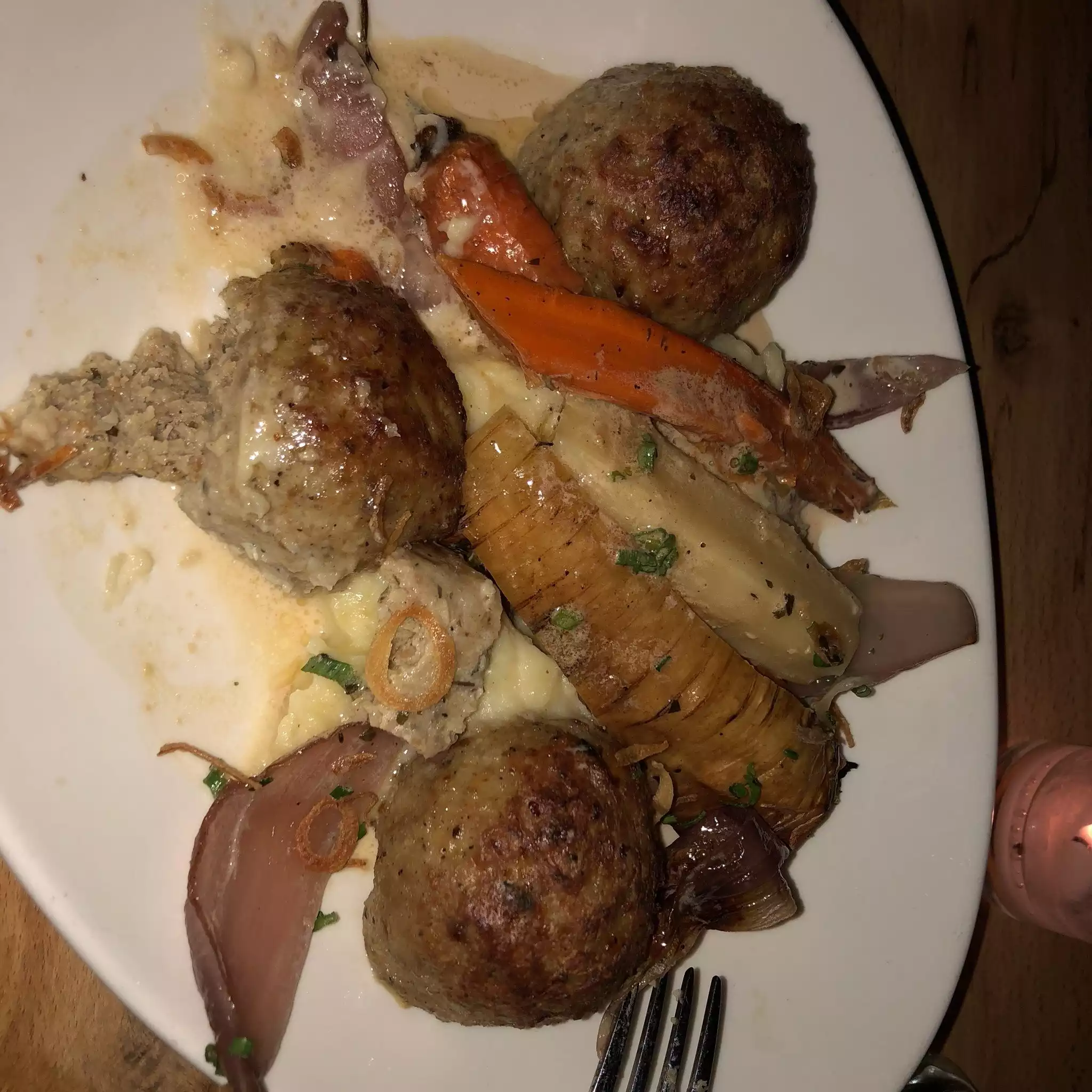 This Austrian/German eclectic cuisine is great for a night when you are famished. Absolutely loved the meatballs! The dish itself is a standout. The schnitzel was also very tasty. The sausage assortment was a wonderful group plate. The beer and wine selection is good. Loved the cozy atmosphere and our waiter was fantastic. A great place for a quiet night with friends or family. + make a reservation if possible, they were quite busy.