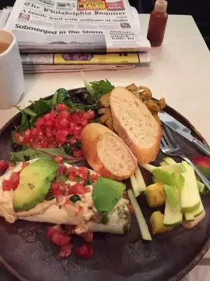 I eat breakfast here every Sunday. This gem serves up Middle Easter-Mediterranean-French-Mexican fusion menu. Every dish is fresh and made to order. I love the Mediterranean platter as well as N Liberties. The fish tacos are the best I've had anywhere. The owners, Gaby and Nathalie will welcome you and treat you like family. If you are in Philly visiting, make sure you include breakfast or lunch here in your plans. You won't be disappointed.