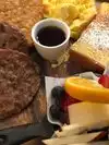 I came here with my fiancĂ© and of course he found this place. The place is nice and cozy! The staff is very nice. The food is unmatched. I donât eat meat so I had an egg white omelet with black beans and cauliflower. I also received a side salad and fruit to go with this meal. Which made it so impressive.i eat veggies and I eat fruit. So it was like they gave you everything. The apples were cut in to sticks so cute.