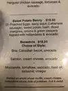 Excellent menu, service & food. We went for brunch and couldn't be more satisfied. I had Calabrese Benedict served with a whole wheat English muffin, tomato, avocado, hollandaise, the best tasting bacon, small salad, fruit salad and zataar potatoes. I am anxious to go again.