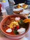 Unique brunch that is very tasty. Brisket huevos rancheros was very good. Kafta sandwich was delicious. Other dishes very good too. They are not inexpensive. In the $18-19 range for most items. No reservations so be prepared to wait. Fast delivery of food and good service. They do try to kick you out quick once your done. I understand the overall need but we were just waiting for my daughter who went to the restroom. They took our full waters and were hovering to encourage us to leave. Once she finished we left. Did not like that rush. Not relaxing. Whole meal from order to leaving took about 1/2 hour. With cost and the rush, donât think I will go back.