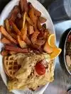 Like a lot of fusion places, the food was excellent and interesting. Would definitely go again. Very nice outside seating. Got the chicken and waffles. Yum,