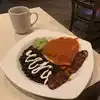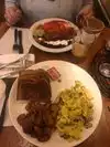 My son, wife and I had a late B'fast. Small place with seating for maybe 40, including their 2nd floor area. I had fruit plate-awesome. My wife had the #1 egg pkate- bread, eggs with mushrooms. Son had #2 egg plate - the chicken sausage with jalapeno was a great flavor.