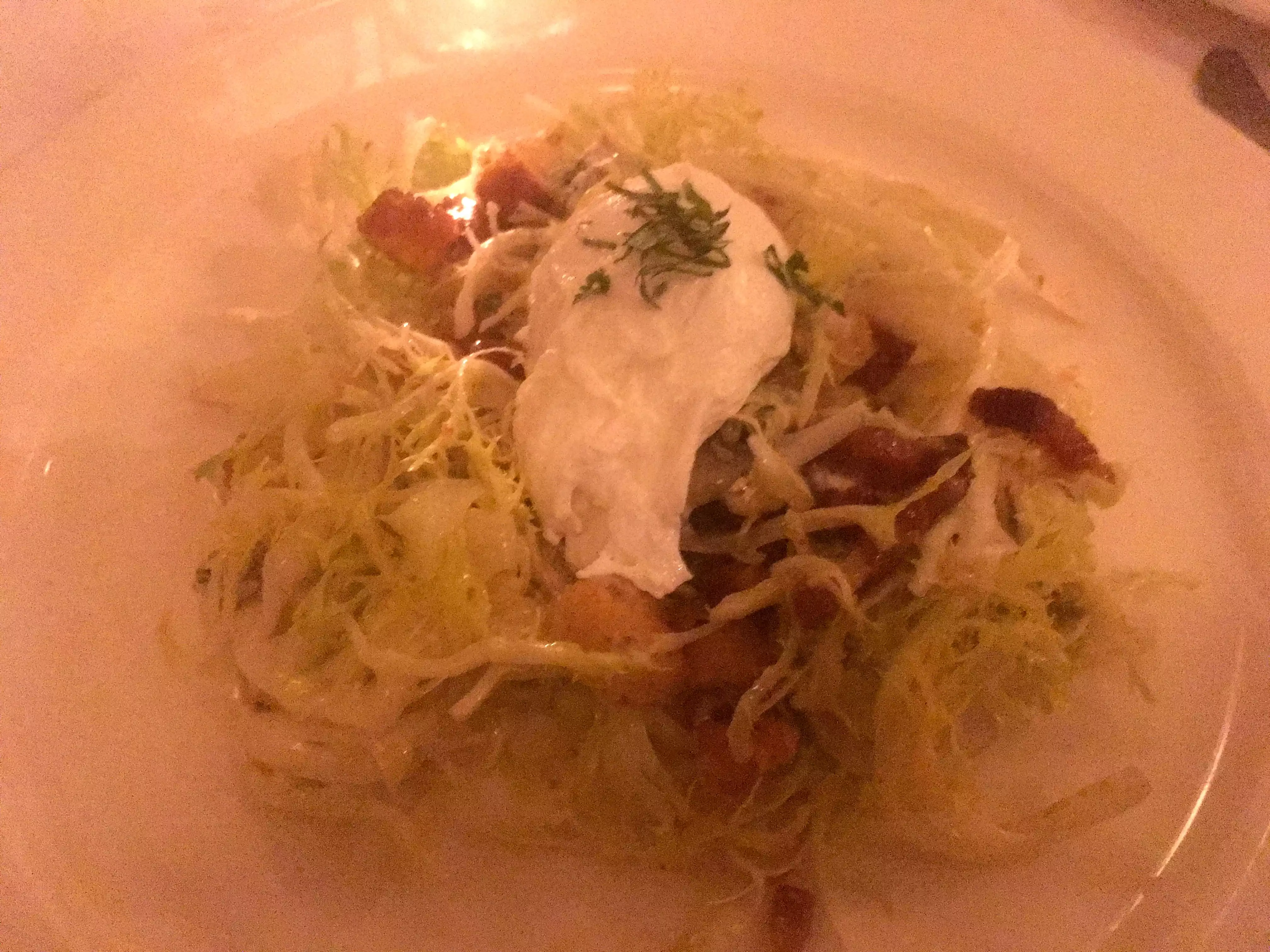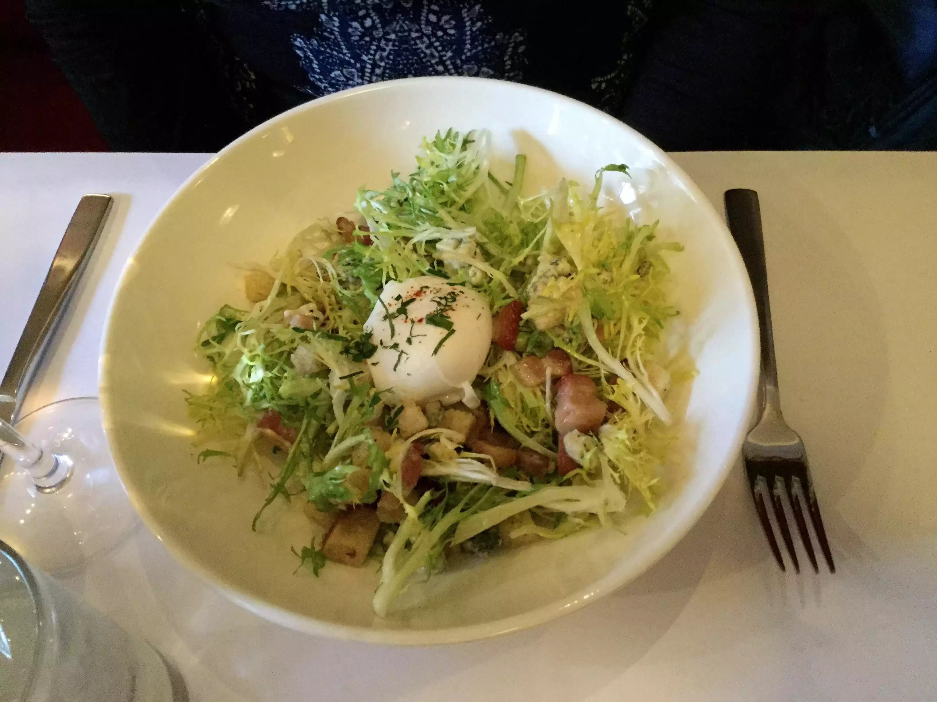 This was a family meal. My daughter ordered a salad (Caesar?) $19 for a few leaves of lettuce and & $11 for a small chicken breast. Grilled cheese. Nothing special was $23. I had fish and chips that looked suspiciously like fish sticks. Croce monsieur was the best of the lot. $12 bottle of beer and something exorbitant for soup rounded out the meal. ($18 for onion soup) $ 200 for four for dinner wasn’t worth it. It was cold outside and the heater wasn’t helpful. They would not seat us in the enclosed outdoor dining area supposedly because there were reservations but three tables remained empty until we left. Also, this has nothing to do with Luxembourg.