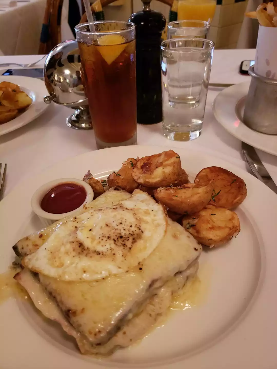 Had a great brunch here. The croque monsieur was good, as was the Burger and fries. Good and attentive service. The restaurant is a bit bleak though. On a nice sunny day you enter and it's dark and gloomy. Would much prefer if they let the light in!