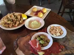 Was in the area and a local recommend a restaurant where we could eat outside. First time with tapas. Ordered four tapas and bread. Started off with sangria with champagne. Waiter was a lot of fun. Hope to go back. Cost me $48. It was worth the experiences. Will order one less tapas next time.