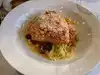 The food was excellent. It was the best I’ve ever had. The service was excellent. A family business. The owner even walked us out and showed us his car. We had veal parmigiana, capellini bosco and mare and salmone cartoccio. They were all delicious.