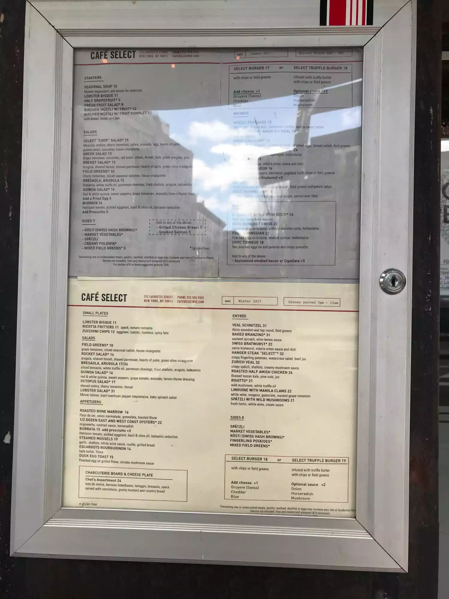 We were in town for the Van Morrison show the following night; had Saturday to kill, but the weather was terrible; rain from Hurricane Mathew. We roamed to Soho from the meatpacking district and took a stab at Cafe Select - There was not a line among the rain and other cafes with lines. Shame on those people. The entire scene was fantastic; no line; excellent service; great seats by the front window, and incredible food!!!!! Gene had the Halloumi cheese plate; and Fannie Flagg had the incredible cheese sandwich. Best kept secret in NYC! Gene
