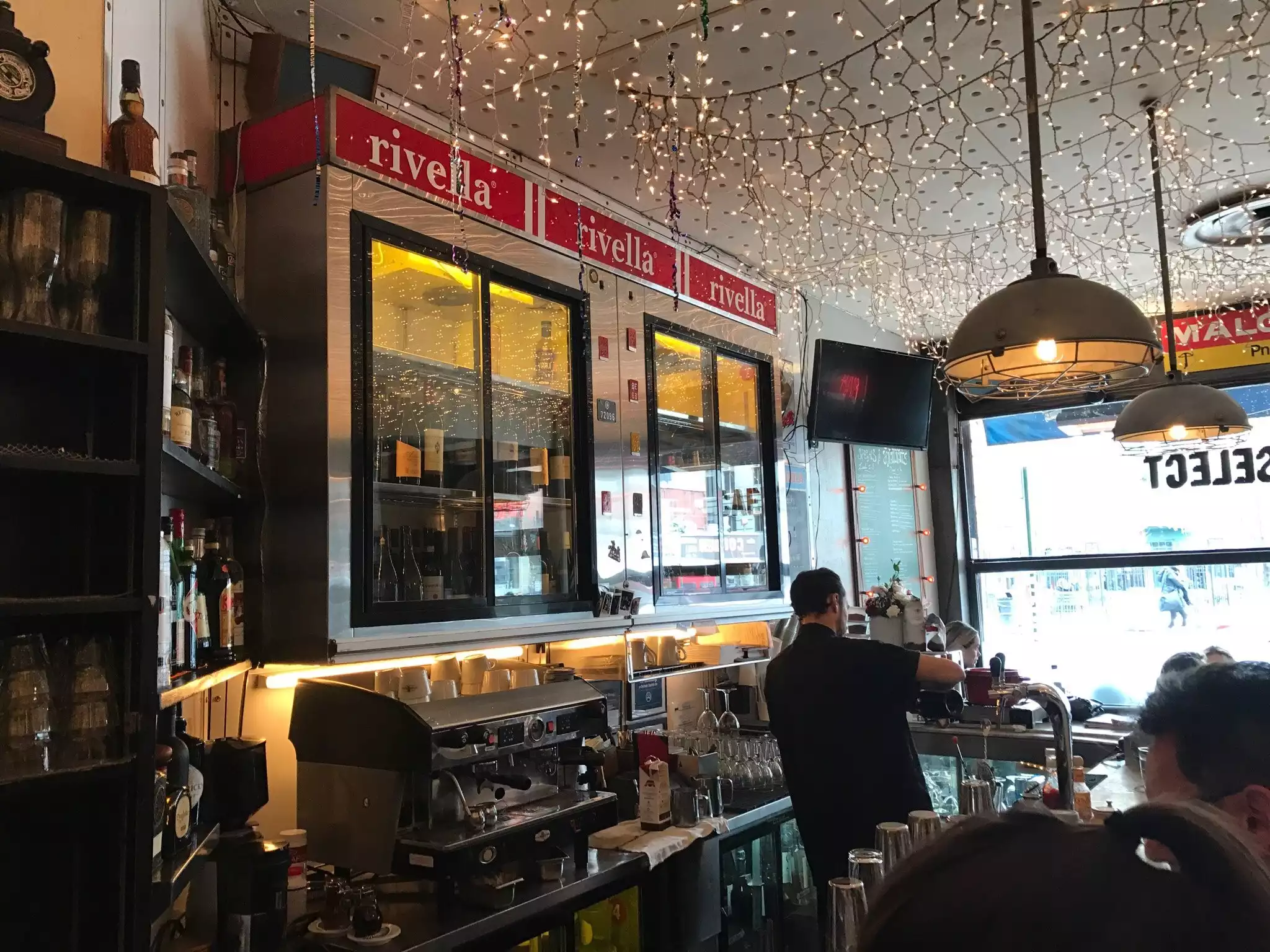 Again thanks to our Aussie living in NYC mate, who steered us here and it was another fantastic recommendation. So casual yet warm (Freezing outside) with lovely twinkling Christmas lights strung across the entire ceiling. On entry you see a bar and we were given a nice banquette (for 4) table. Not a big place, not tiny either. Crowd was relaxed interesting, informal - casually sophisticated i that 'I live in Greenwich Village but I'm eating out here tonight' way. Beers were fantastic. malty and deep flavoured. We shared a classic cheese fondue and other Swiss dishes including a Spatleze type of dish. Chicken and everything was great. Service was just right. We had a wonderful warm and relaxing time at Cafe Select.