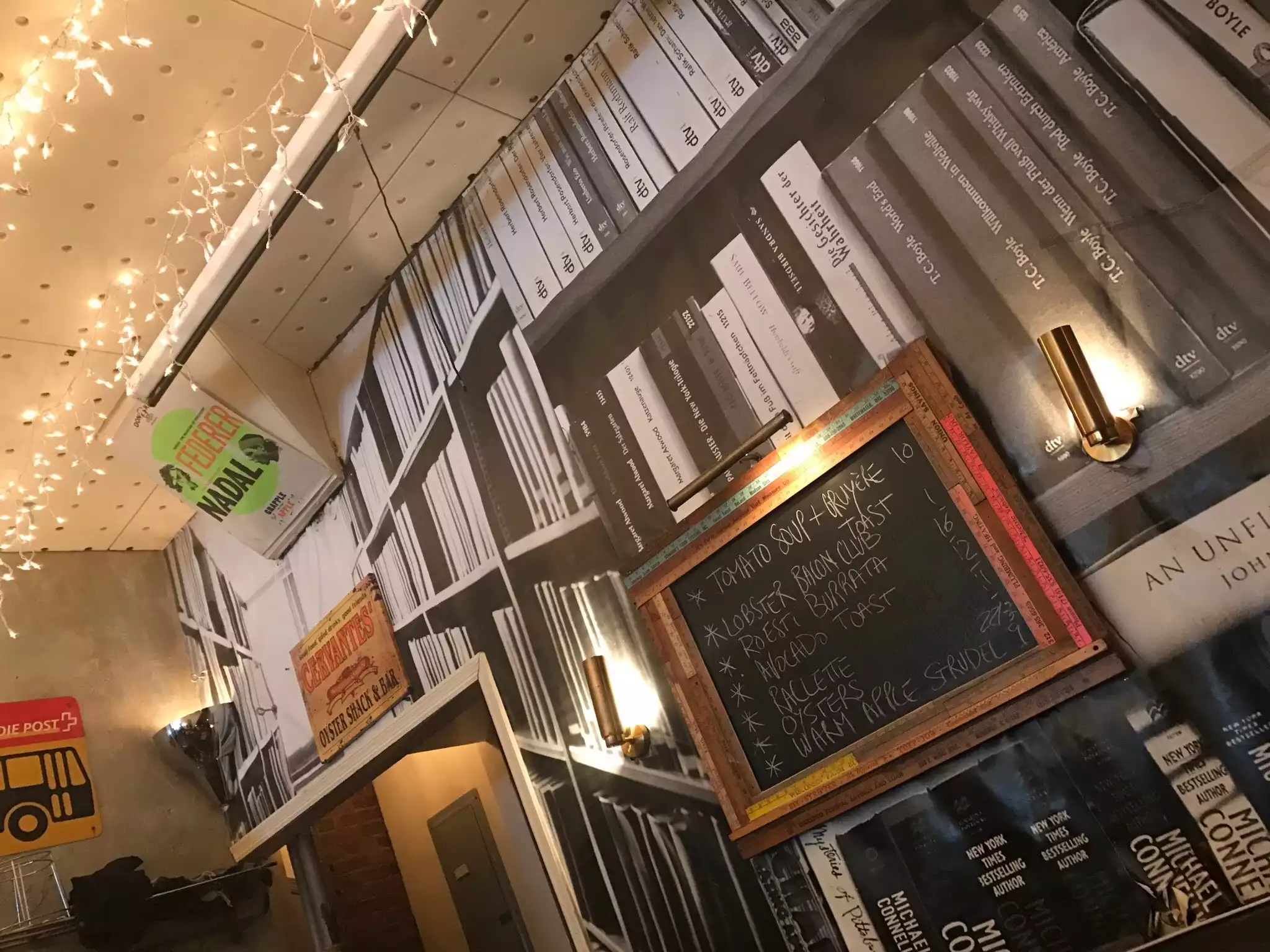 TripAdvisor should introduce 3,5 Points ;-) We were sitting in the little Petrosino Square park high on sugar from Eileen's Special Cheesecake when we got a little bit cold and spotted Cafe Select across the road and decided to go in. The place looked as nice from inside with lots of ittle lights hanging from the ceiling that created a cozy atmosphere. It was around 5/6 pm and we immediately got seated but were told they'd need the table two hours (!) later because there was a reservation; some people might find that off putting as it might make feel them rushed to leave the place, thus ruining the dining experience. This review isn't fully representative as we only had a smaller menu but everything was perfectly fine. The food and drinks were served quickly by a very busy yet very very friendly and attentive male waiter, were quite cheap for New York standards and the soup of the day was pretty yummy as well.