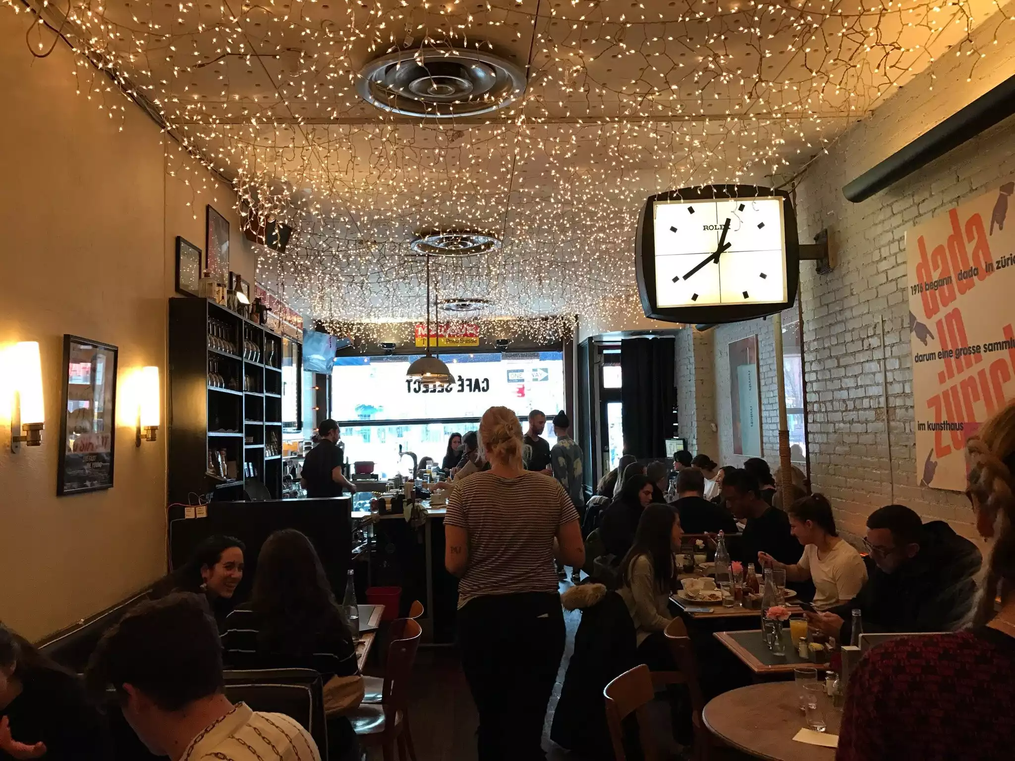 This Swiss cafe is a great spot for both brunch and dinner. The tables outside provide a great place to relax and people watch. The atmosphere inside is fairytale-like and very chic. The crowd is a mix of students, hipsters, and trendy adults alike. For brunch, I recommend the lemon-infused French toast or the croque monsieur. In the evening, ask to be seated "in the back" and you will be taken to a former storage room past the kitchen that has been converted into a speakeasy. The atmosphere is cool and reminiscent of a ski chalet, a nice contrast to the main dining room. The speakeasy is cash only, but there is an ATM at the front of the restaurant. Overall, this cafe is a hidden gem and is the perfect start or end to a day in the city.