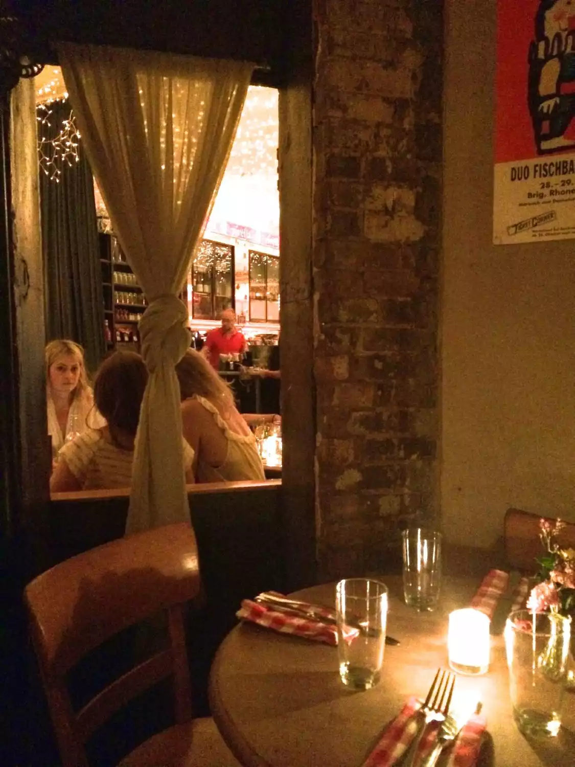 Superb find! A great little bar with a great selection of wine and beer. Subtle Swiss theme and gorgeous fairy lights over the ceiling. Cute little tables and friendly service. Went here for a pre-dinner drink. Highly recommended.