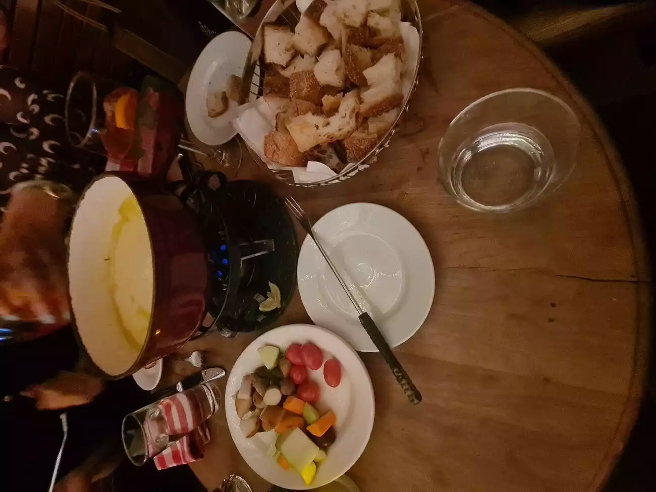 Dinner with partner and friends we have t seen for some time. Though ai dont like cheese fondue, all others enjoyed it A lot. Service friendly and Quick. But.... The sound level is Incredible. I couldnt understand what was said at our table. So. I made this review and left....