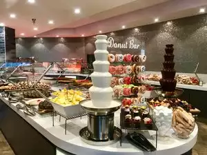 What a nice venue this is. They have so much food and even more desserts. Lovely displays, tons of seafood variety. Great tasting food and a nice atmosphere. If you area in the neighborhood definitely check it out. I think this is the best buffet I've been to in L.A.