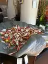 Tables were packed tightly for the abundant buffet. We were excited to try the good-looking crab, crab legs, shrimp, lobster thermidore and many many more dishes. We were sorely disappointed. The crab legs were entirely uncracked - very difficult to work with. The seafood was rubbery and incredibly salty. The first serving of prime rib (from a very unfriendly fellow) was just a pile of fat.