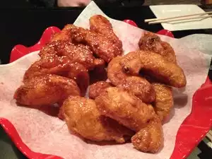 Went with my almost 21-year old son today. We ordered 20 each of Soy and Spicy. Yes, there is a long wait, but these are COOKED to order (and cooked TWICE no less.) Waitress was adorable (and though she seemed to be very American said nothing but "no problem" to us during our entire meal. I don't have a problem with that, though. The wings were perfectly uniform, PIPING hot and crispy as could be. The spicy ones WERE very spicy, and we are not ones to back down form heat.) They Soy were delicious as well, and I recommend getting both and alternating between them to keep your taste buds guessing. Both were VERY sweet, but that's OK. It was a nice flavor profile. Between the two of us, we left four wings to bring back for my daughter and it was a challenge, not because thy were not incredible, but because they were so meaty. These are not your average bar wings. I would be interested in trying some of their other dishes now.