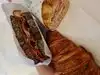 Nice selection of filled savoury croissants and small baguettes.. homemade quiche and slices of homemade cake .. also good service , pleasant staff and exceptionally clean