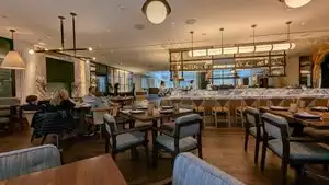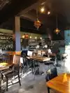 The restaurant has varnished birch tables with fifties style chairs. The floor is concrete. The atmosphere is funky but the food is great. And what an amazing variety of food. From vegan to range-free to gluten-free. People with celiac disease do have to be careful for cross contamination. The prices are more then reasonable. I had the salmon burger with ginger sauce. The sauce was spicy which is why I ordered it. The flavor was incredible. It was my first time there. I will be back and I will recommend it to friends.