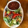 We ended up here late in the afternoon before the early dinner crowd on a Friday. We weren’t aware of the vegan, vegetarian and gluten free emphasis and looked forward to trying some items off the menu. The ambience was casual and comfortable. Our server was very good and she accommodated our requests. The spinach salad was excellent with hazelnuts, currants, red onions and goat cheese. We ordered a side of bacon on the side to top off the salad. The soup and salad option was good with tasty a vegan chili and mixed green salad with quinoa and sunflower seeds. The accompanying corn muffin was very good. The mushroom onion burger was delicious, but the vegan mayonnaise was not too flavorful. The Reuben sandwich was good, and interestingly the tempeh’s texture resembled that of a potato rather than meat. The vegan carrot cake was very good. Our next visit we would like to try the breakfast menu;-).