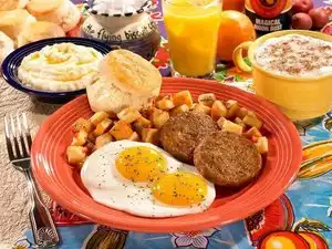 Ordered the 2-2-2 with tempe and my daughter had it with eggs and apple sausage. Just very blah, would not come back again. The tempe had no flavor, I even ordered guacamole and salsa to try and spruce it up, without success. If you want tasty vegan, I would suggest Blossoming Lotus instead.