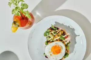 A quaint restaurant with local artist work on the walls for sale Service was very friendly and personable We were told of the special which was potato hash with winter root vegetables, fennel, celeriac, watercress, vegan horseradish sauce and your choice of eggs or tofu. I ordered the special with over medium eggs. I am not much of a vegetarian eater but this breakfast was absolutely delicious. It had lots of flavor and the portion was large. I do wish it had more horseradish sauce because it helped give the dish a kick. The other breakfast ordered were the corn cakes with roasted peppers, salsa, guacamole and vegan sour cream. Two large corn cakes that were tasty, light and full of flavor. Very good restaurant when visiting Portland and having breakfast with friends.