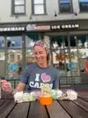 BOTTOM LINE: If you can’t make decisions quickly, look up the menu in advance! Cute ice cream place in the Gaslamp District. Stopped here after dinner and were surprised by all of the flavors to choose from. We did need to wait 20 minutes to get it. Once in and waited on, things went quickly. We all got cones and they give you a massive amount of ice cream!! I got a single and on the East Coast that would be considered at least a double!! I personally got the Cookies and Cream and there was nothing special about it. Average. The cookie chunks were nice but that is common nowadays. I did ask for sprinkles and the girl literally took a tiny spoon and poured it over the cone. I think there were maybe 10 sprinkles on my cone 😂 The banana was pretty good as well. There was plenty of outdoor seating which was nice. And, they give away cute little cones to your furry pets so feel free to bring them along!!