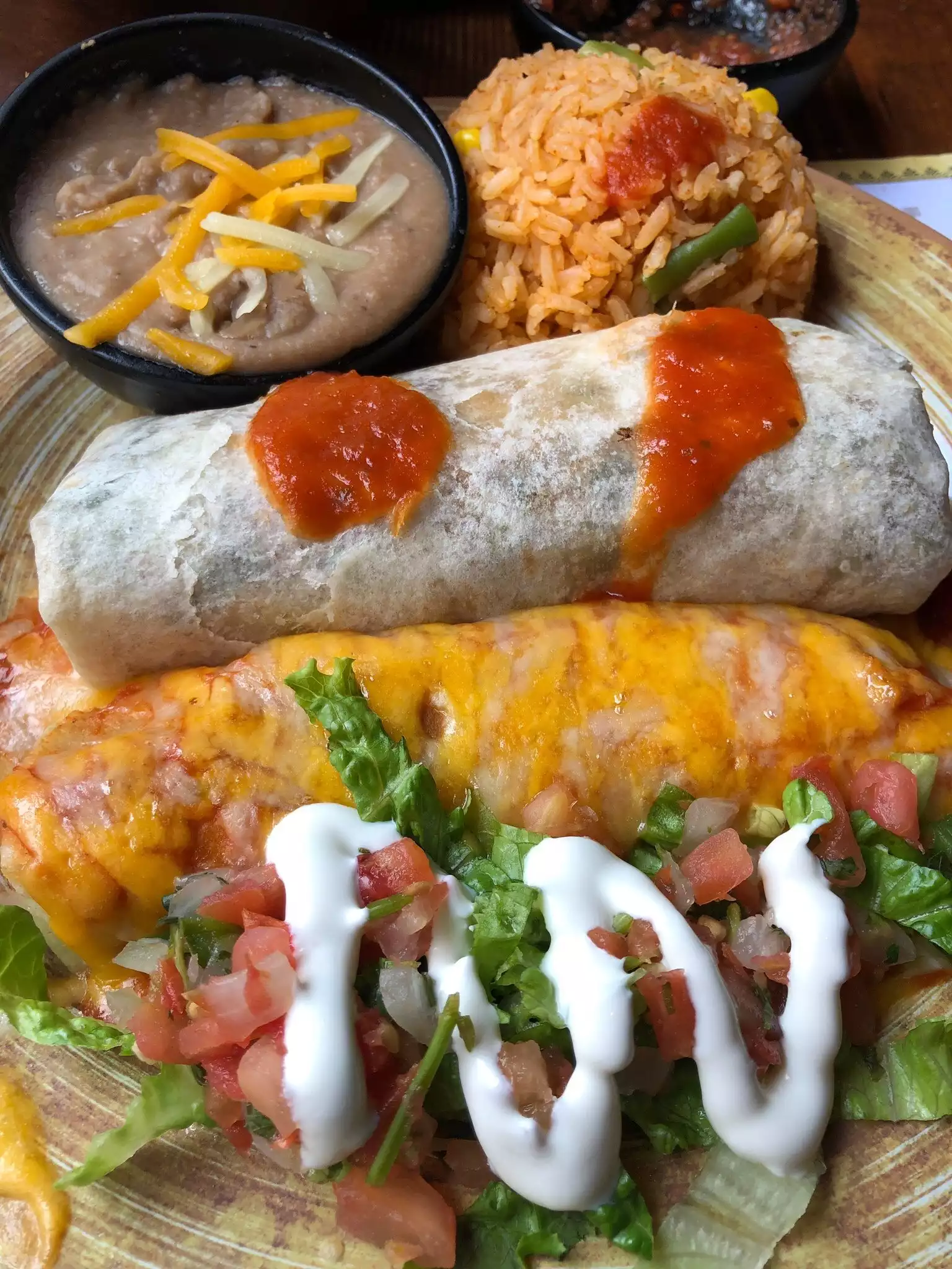 Great tasty meal offering choice in Meats chicken and Sea food Sizzling Salsa and Guacamole .Comfortable and Cosy setting . Service was quick and friendly . Portion sizes were more than adequate