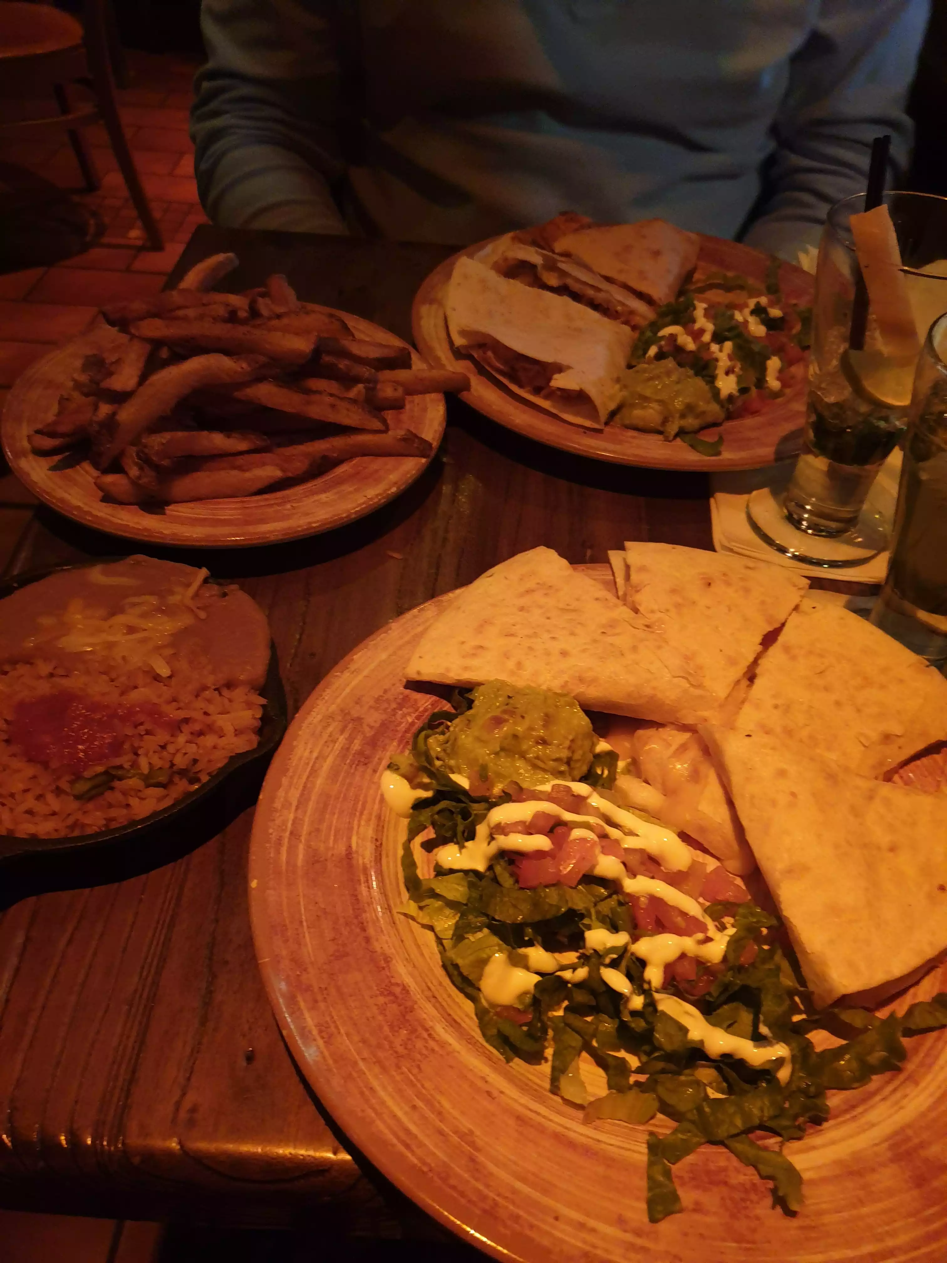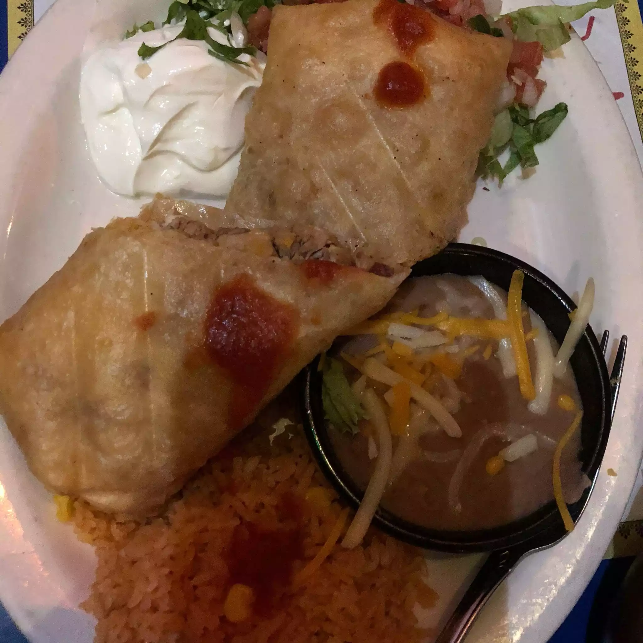 My boyfriend and I as well as our friends who are also a couple came here over the weekend.. it’s a cute spot, dimmed lighting, some music playing.. But anyway the appetizers we shared was really good! Some nice fresh guac and chips was amazing and we also shared the chicken queso dip which also was delicious! I would deff recommend getting either of those when going, and the drinks were very good, we got a frozen Esposa loca with mixed berries or something like that, it was big. The only thing is wasn’t crazy over was the chicken in my main coarse meal I got the chicken chimichanga which came with a side of rice An refried beans with a dallop of guac An sour cream which was good. But I’m picky when it comes to chicken, if it was shredded chicken it would have been a really good chimi but it was chunks of chicken An I get grossed out with like squeaky chewy chicken.. but overall it was a cool little spot to eat at!