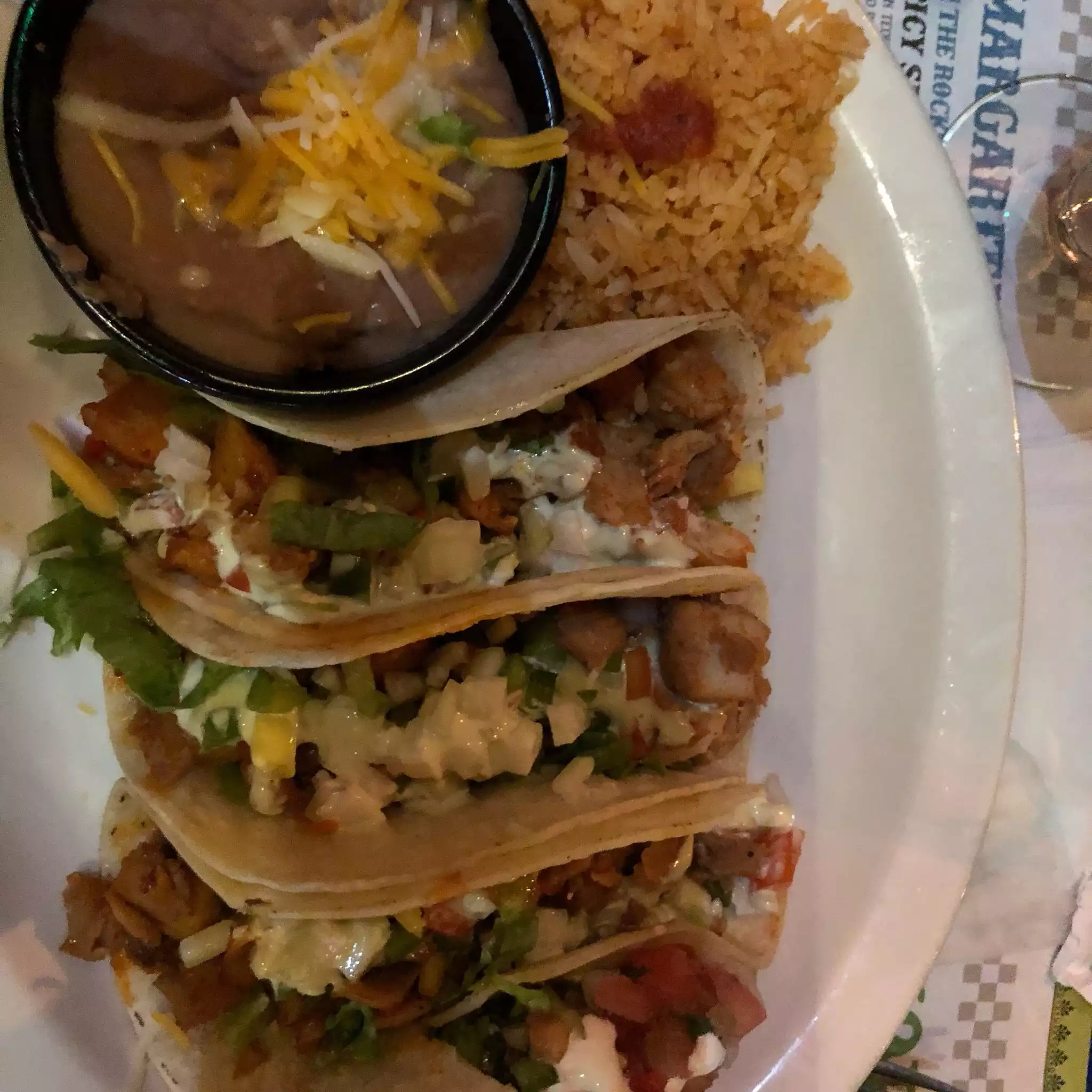 Can’t say much about food about margaritas are amazing. Huge variety, coconut, watermelon, strawberry, original, frozen and on the rocks to name a few.