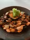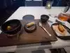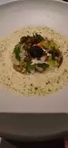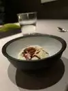 We had dinner in the adorable and creative Yurt Village and really enjoyed the atmosphere created by the decor, the staff outfits, the cider upon arrival and coffee which was served in a thermos with camping mugs with our dessert. The raclette appetizer was a delicious spread, which we enjoyed with our cocktails. Both the oysters and the dumplings were tasty. We agreed that dessert was by far the best course. Our main courses were disappointing: he had the pork chops and I had the crab risotto... at least, that is what it was called. I couldn't really see any crab, and due to the heavy seasoning, I couldn't taste it. Such a bummer since getting reservations was super hard and we were really excited about the meal.