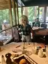My husband usually has issues with sitting outside, allergies, etc, but on this visit, our return after maybe 10 years, it was the perfect day for the patio. We had the most wonderful time with the river rapidly flowing as backdrop to bird-watching and saw goldfinches, a woodpecker, bluebirds, cardinals and doves. Quite the show. Service was really very accommodating. No complaints there at all. Our spring roll appetizer was tasty right down to the lightly dressed cabbage slaw side greens. Yuzu sauce just lovely. Shared the Cobb salad and felt it was a good mix of all the elements. Our only suggestion to the kitchen was to make sure and present the nicely browned side of the chicken up (ours was delivered with the pale slightly unappetizing side facing up.) And then the dessert, oh my! The Crackerjack Popcorn sundae was possibly the best dessert we’ve ever had. Clumps of crackerjack Carmel corn are scattered on the plate and in the bottom of a tall sundae glass. On top of that is a layer of vanilla ice cream and a layer of Carmel sauce. As these melt down they soak the crackerjack and it all melds for a marvelous eating experience.