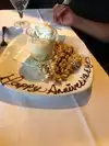 My husband made reservations saying it was our 26th anniversary (they said it would never last). We were greeted with “Happy Anniversary “ by the hostess. Impressed. We got there a bit early so we could have a few couple of drinks in the bar. When our table (comfy booth) was ready we were seated by someone who wished us a happy anniversary. Wow! When our server came he greeted us by our names and wished us a happy anniversary. He proceeded to hand us menus that had Happy Anniversary at the top. Talk about impressed! Service from beginning to end was unparalleled. We had calamari and olive bread to start. I had the cod my husband had rabbit. And ended with the chocolate dessert, that had Happy Anniversary written in chocolate. All fabulous. If we make it to our 27th we might just go back!
