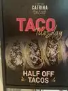 My husband and I went today, and I was Taco Tuesday! This, Tacos were half of a price. We ordered Carne Asada Tacos, and baja fish tacos. The order comes with 5 tacos whose size is good enough. The beef tacos was fine but a little greasy. The green salsa flavor was pretty good.I recommend the Taco Tuesday so that you can try the tacos. Likewise, I recommend the happy hour on Mondays because the restaurant has 2x1 on selected drinks.