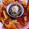 Small menu, service is ok, new restaurant, great drinks and desserts, chips served when you first sit, wings are very good, mid price most over 12 and $20 per dish. No Chimichangas, tacos are very small, like the order of 3 fit in your hand. Wooden tables and chairs. No Fries nor burgers nor pizzas. Tight space, small tables and bumping to near tables, difficult parking areas ,some construction, located in 2nd floor